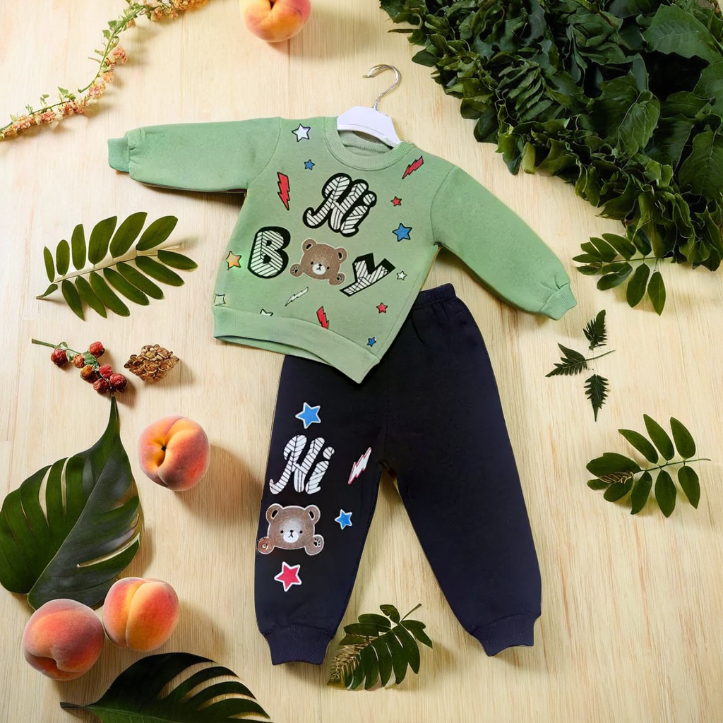 Stilvolle Farbkombinationen: Der Sportanzug ist in den modernen Farben Grau und Grün erhältlich – perfekt für kleine Trendsetter.