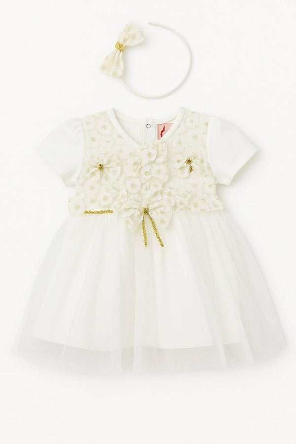 Festliches Baby- & Kinderkleid mit Haarreif – Creme-Gold in edlem Design